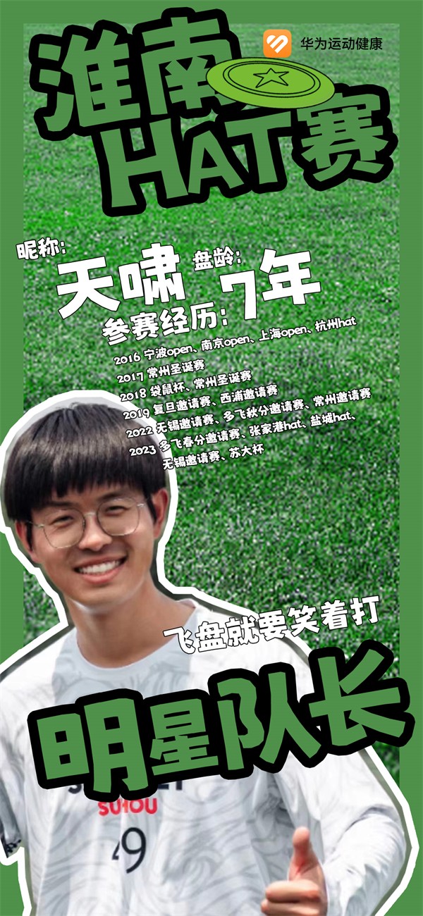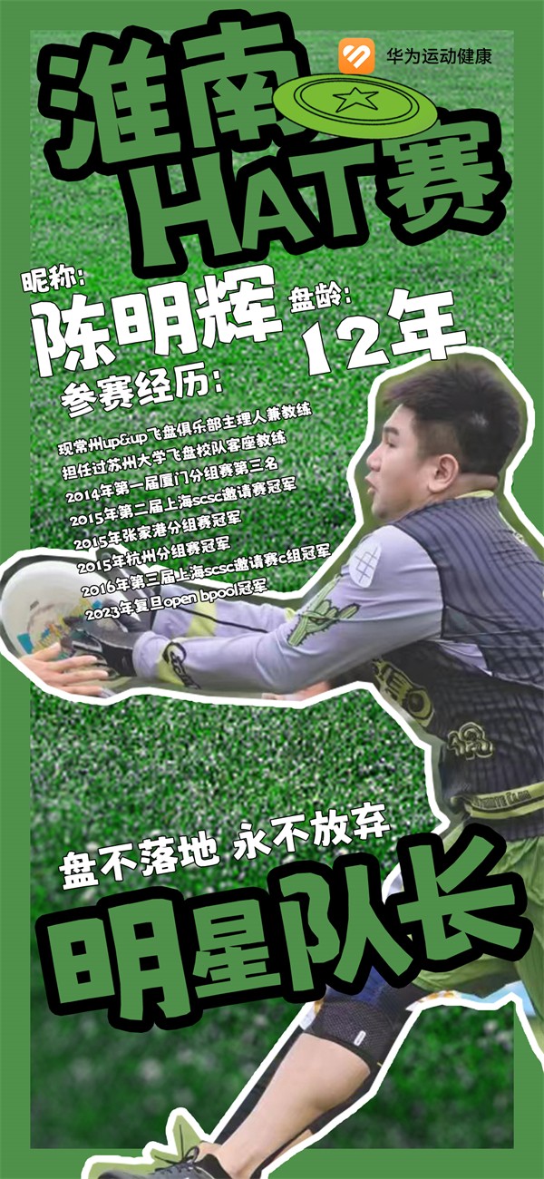 2023首屆淮南極限飛盤(pán)HAT賽8位明星隊長(cháng)名單公布啦?。ㄒ韵虏环峙琶群螅┰谫愂陆?jīng)驗豐富的明星隊長(cháng)帶領(lǐng)下來(lái)淮南打一場(chǎng)收獲滿(mǎn)滿(mǎn)的HAT賽吧!在比賽中成長(cháng),一起快樂(lè )飛盤(pán)!