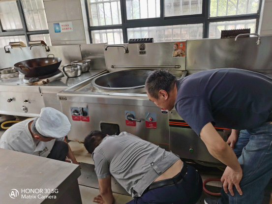 工作人員在檢查燃氣閥門(mén)和燃氣軟管是否漏氣