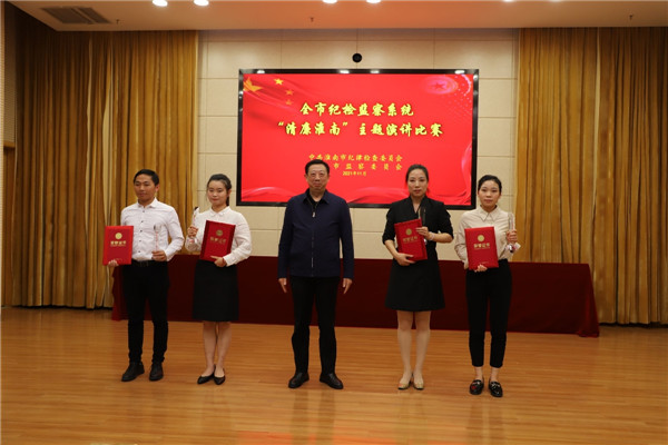 為深入推進(jìn)紀檢監察系統黨史學(xué)習教育,助推“清廉淮南”建設,11月4日,市紀委監委舉行全市紀檢監察系統“清廉淮南”主題演講比賽。市委常委、市紀委書(shū)記、市監委主任顧文觀(guān)看比賽并為獲獎選手頒獎。比賽中,10名選手緊扣“清廉淮南”主題,結合自身工作實(shí)際和崗位特點(diǎn),以身邊實(shí)例、先進(jìn)典型、廉政典故等為素材,用慷慨激昂的語(yǔ)言、情深意切的情感,抒發(fā)對從事紀檢監察工作的所思所感所悟,講述新時(shí)代紀檢監察干部的初心與使
