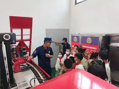 在消防大隊負責同志的帶領(lǐng)下,孩子們有序地參觀(guān)了消防車(chē)輛以及隨車(chē)器材裝備,消防員用淺顯易懂的語(yǔ)言,耐心地為孩子們介紹各類(lèi)消防工具器材和裝備的使用方法。為了讓孩子們能夠充分形象地認識消防、體驗消防,激發(fā)孩子們的興趣,消防員們還安排孩子們乘坐消防車(chē)輛、穿救生衣、識別消防標識和開(kāi)展電瓶車(chē)充電著(zhù)火模擬、學(xué)生宿舍火災隱患排查、逃生實(shí)訓等活動(dòng),讓孩子們非常直觀(guān)的地了解消防救援的過(guò)程和火災的危險性。通過(guò)現場(chǎng)互動(dòng)的方式,向孩子們詳細講解火場(chǎng)如何逃生自救等消防安全知識,教育孩子們不要玩火、玩電,要時(shí)刻注意自身的安全。孩子們還參觀(guān)了消防員戰士們的生活區,看到整齊的豆腐塊狀的被子引起孩子們陣陣贊嘆聲。