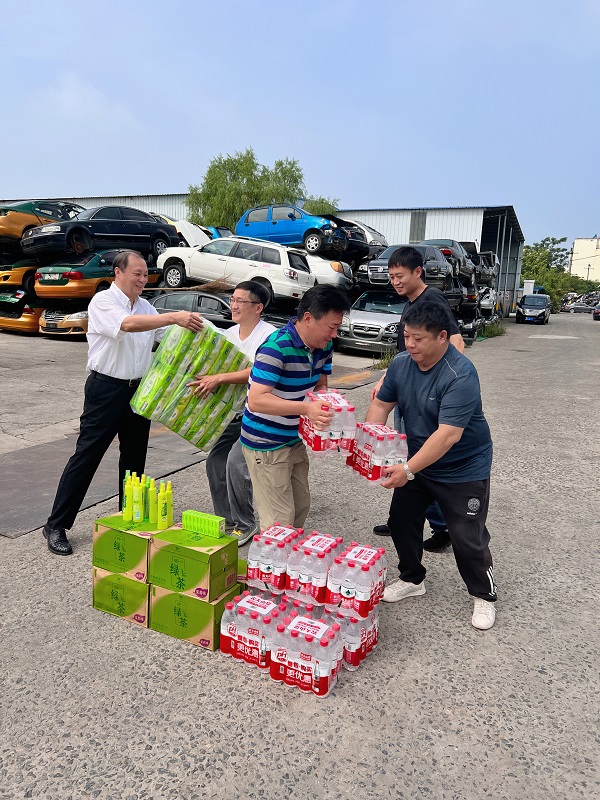 鄧傳國一行先后來(lái)到淮南市同盛報廢汽車(chē)拆解有限公司室外作業(yè)現場(chǎng)和瑞豐源楊公米廠(chǎng)生產(chǎn)車(chē)間,為正在高溫中作業(yè)的職工送上毛巾、香皂、風(fēng)油精、花露水、清涼飲品、抽紙等防暑降溫慰問(wèn)品。