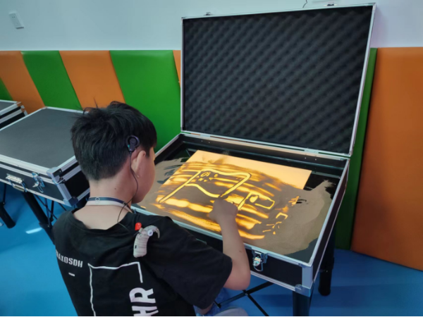 接著(zhù)學(xué)生們又來(lái)到學(xué)校暑期新建的特殊教育資源中心,圍著(zhù)各種教具,用心學(xué)習科普知識,認真的傾聽(tīng)資源資源中心老師的講解,體驗各項科技的奧秘。每一件教具都具有極強的知識性和教育性,讓學(xué)生近距離的感受到了科技帶來(lái)的無(wú)窮魅力。參觀(guān)過(guò)程中,孩子們看著(zhù)從未見(jiàn)過(guò)的新奇科技設施,時(shí)而鎖眉、時(shí)而大笑,他們親自動(dòng)手爭搶著(zhù)實(shí)踐,剛剛還是“迷惑”的表情,實(shí)踐過(guò)后,他們的臉上瞬間露出得意的笑容。