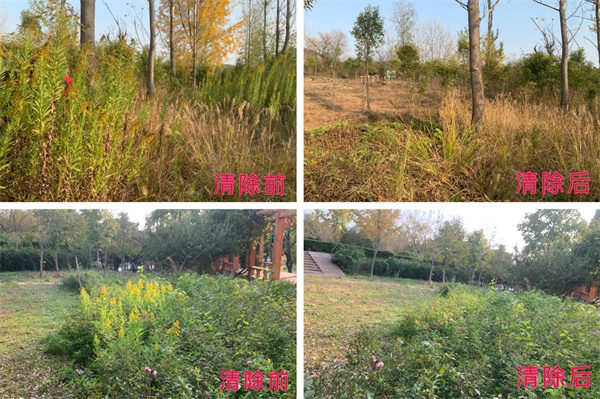 二是科學(xué)鏟除 講究方法。針對“加拿大一枝黃花”有種子隨風(fēng)傳播和根狀莖繁殖的特點(diǎn),組織全場(chǎng)干部職工在花期進(jìn)行人工挖除方式,徹底清除,從“根”防治。