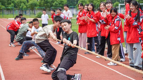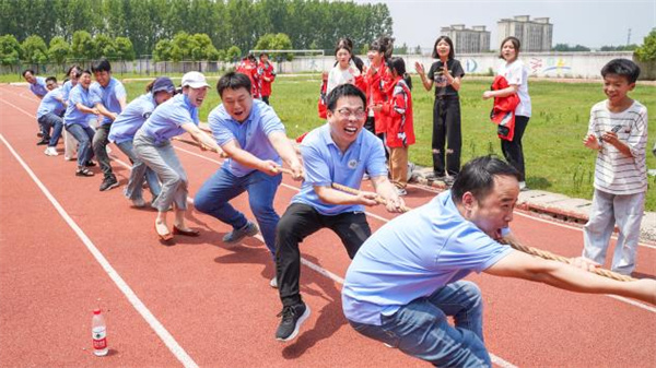 捐贈儀式結束后,淮南體彩的工作人員和業(yè)主代表們帶領(lǐng)孩子們,開(kāi)展了一堂生動(dòng)有趣的體育課。在操場(chǎng)上,有趣的托球接力賽以及緊張刺激的拔河比賽,瞬間將現場(chǎng)的氣氛點(diǎn)燃,同學(xué)們都沉浸在緊張激烈而又趣味橫生的比賽中。