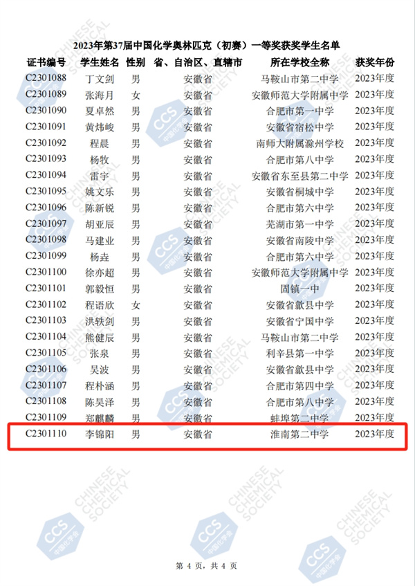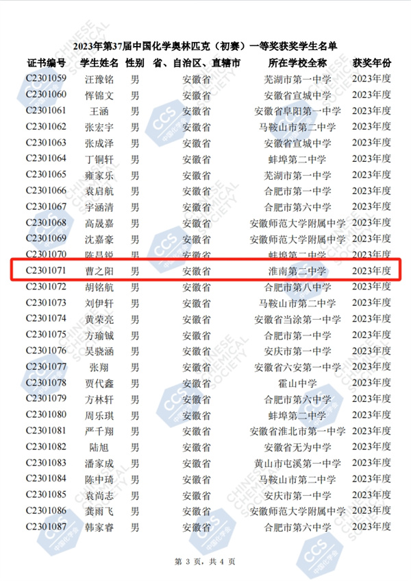 近日中國化學(xué)會(huì )官網(wǎng)公布了第37屆中國化學(xué)奧林匹克(初賽)一等獎學(xué)生公示名單安徽省初賽獲一等獎學(xué)生共110人淮南有3名學(xué)生上榜!獲此殊榮者將參與到?jīng)Q賽名額的角逐中佼佼者更有機會(huì )進(jìn)入國家集訓隊獲得保送北清的機會(huì )這些孩子真的太棒了趕緊轉發(fā)出去為他們點(diǎn)贊來(lái)源:中國化學(xué)會(huì )官網(wǎng)