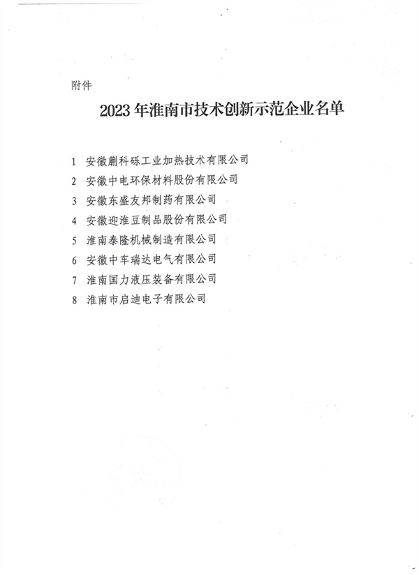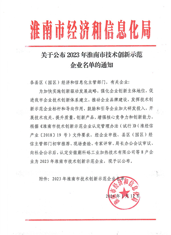 關(guān)于公布2023年淮南市技術(shù)創(chuàng )新示范企業(yè)名單的通知