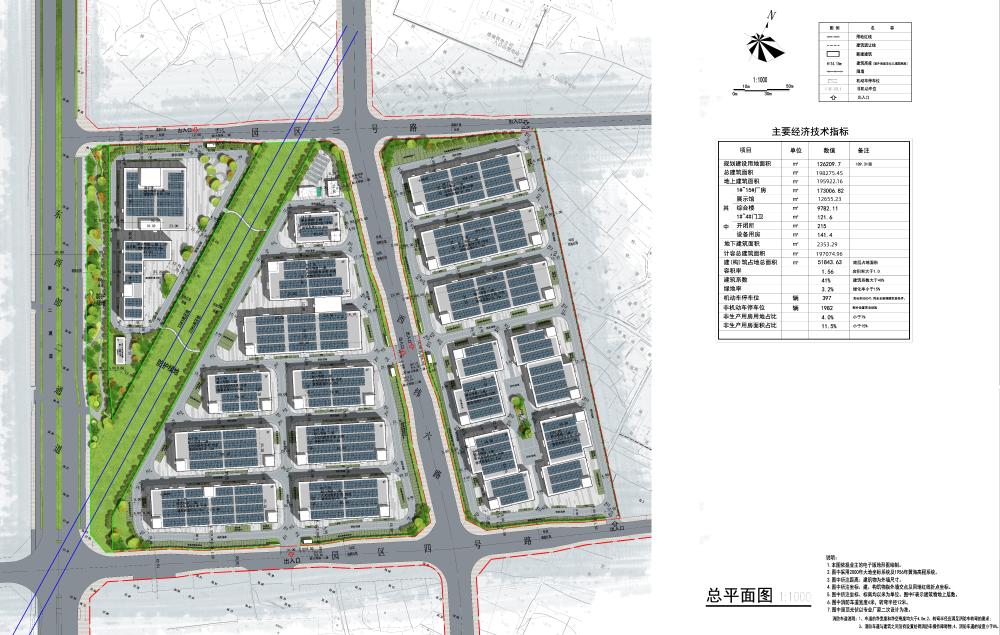 項目位于八公山區山王鎮春申大街東側,園區三號路南側,園區四號路北側,規劃用地面積約12.62公頃。項目規劃建設4棟3層廠(chǎng)房、11棟4層廠(chǎng)房,1棟4層展示館,1棟6層綜合樓及4棟1層門(mén)衛、1棟1層開(kāi)閉所、1棟1層設備用房等配套建筑。規劃總建筑面積約19.83萬(wàn)㎡,計容建筑面積約19.7萬(wàn)㎡。容積率1.56,建筑系數約41%,綠地率約3.2%。