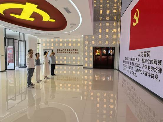 參觀(guān)結束后,在鮮艷的黨旗下,中心全體黨員干部重溫入黨誓詞,莊嚴的誓詞時(shí)刻警醒黨員干部要常敲思想警鐘,常緊紀律之弦,常存敬畏之心,不斷提高黨性修養和拒腐防變能力。