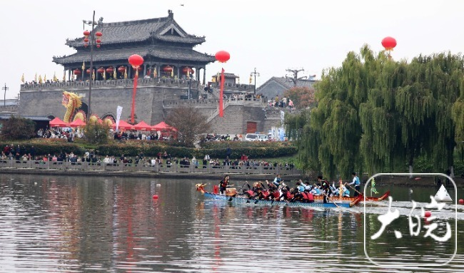 大皖新聞?dòng)?nbsp;11月9日上午,壽州古城杯第十四屆長(cháng)三角城市龍舟邀請賽暨安徽省青少年龍舟公開(kāi)賽(高校組)在壽州古城南門(mén)護城河上演。據了解,壽州古城護城河上舉辦龍舟賽是千年來(lái)首次。