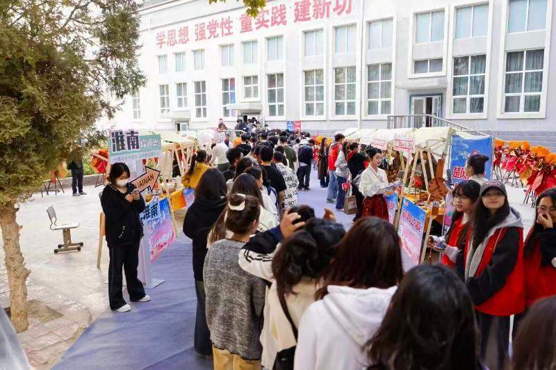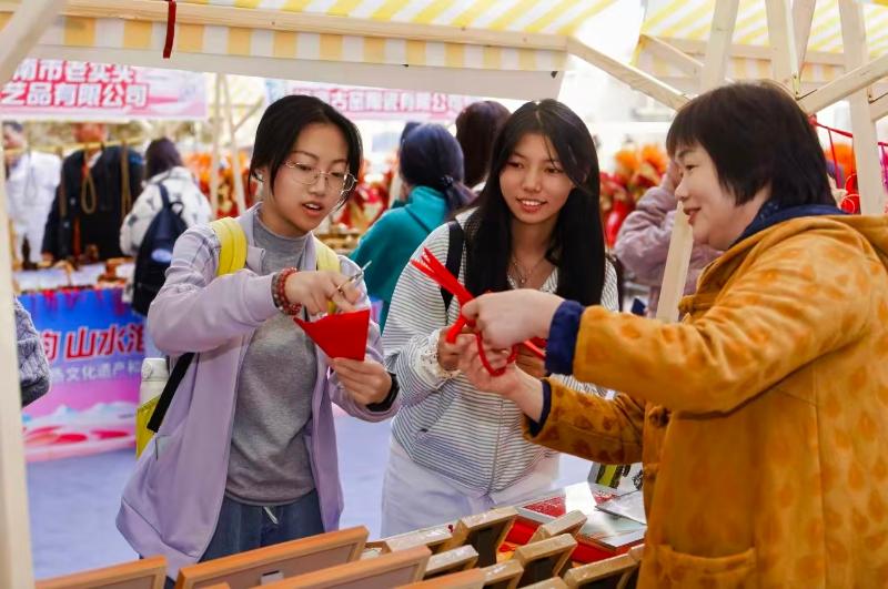 演出同時(shí),9位淮南企業(yè)代表攜帶地方特色產(chǎn)品開(kāi)展非遺市集展,從淮南特色美食到非遺手工藝品,每件展品均吸引師生駐足。