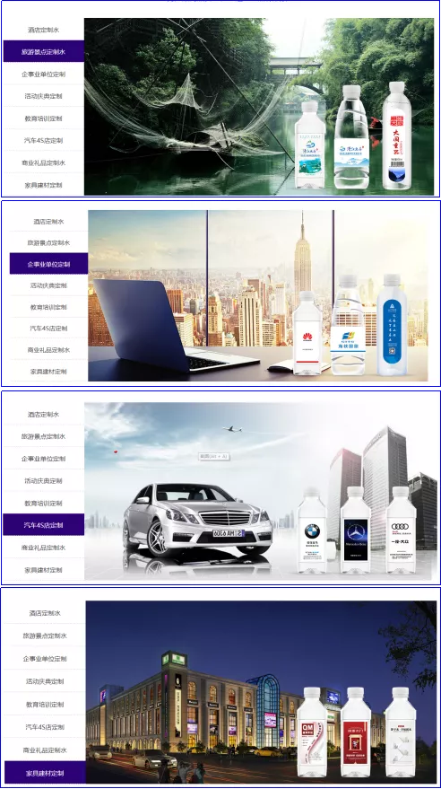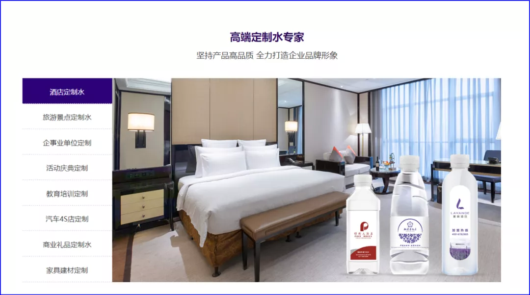 瓶裝定制水通過(guò)將瓶身標簽這個(gè)黃金展示窗口讓利給企業(yè),由企業(yè)通過(guò)自身的個(gè)性化需求對瓶身展現的內容進(jìn)行量身定制,為企業(yè)打造出一款以水為媒的專(zhuān)屬的營(yíng)銷(xiāo)載體。