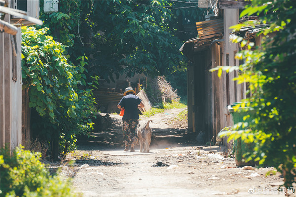 夏日陽(yáng)光下,長(cháng)滿(mǎn)雜草野花的小巷,鋪上玻璃渣的紅磚墻。拖拉機盛滿(mǎn)的西瓜,小巷里齲齲獨行的老人??吹竭@些,感覺(jué)好像回到了兒時(shí)充滿(mǎn)蟬鳴聲的夏天。
