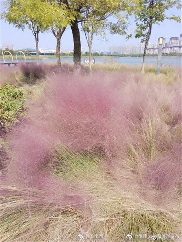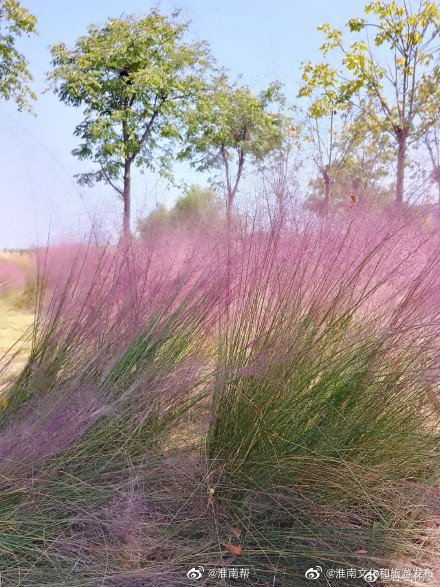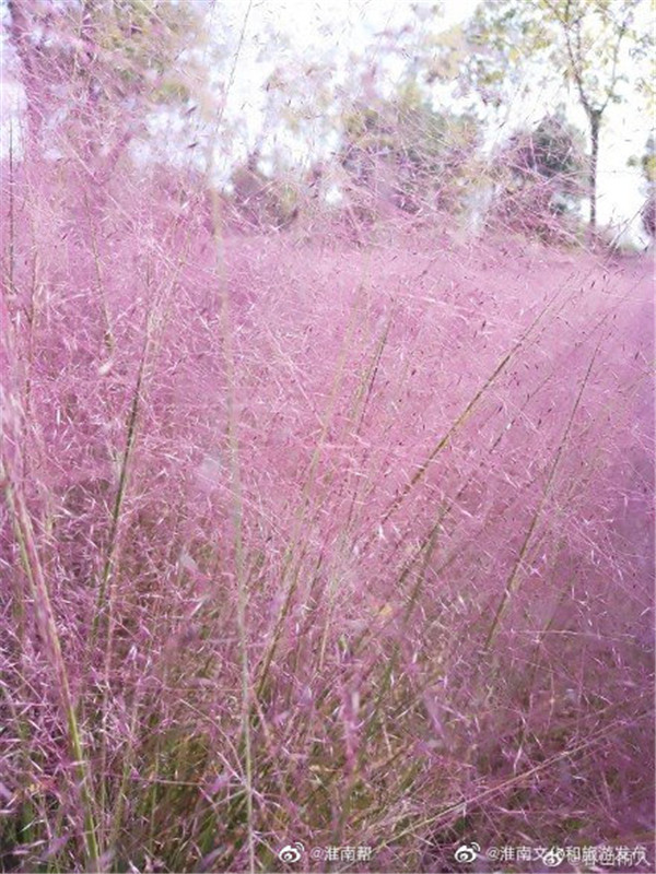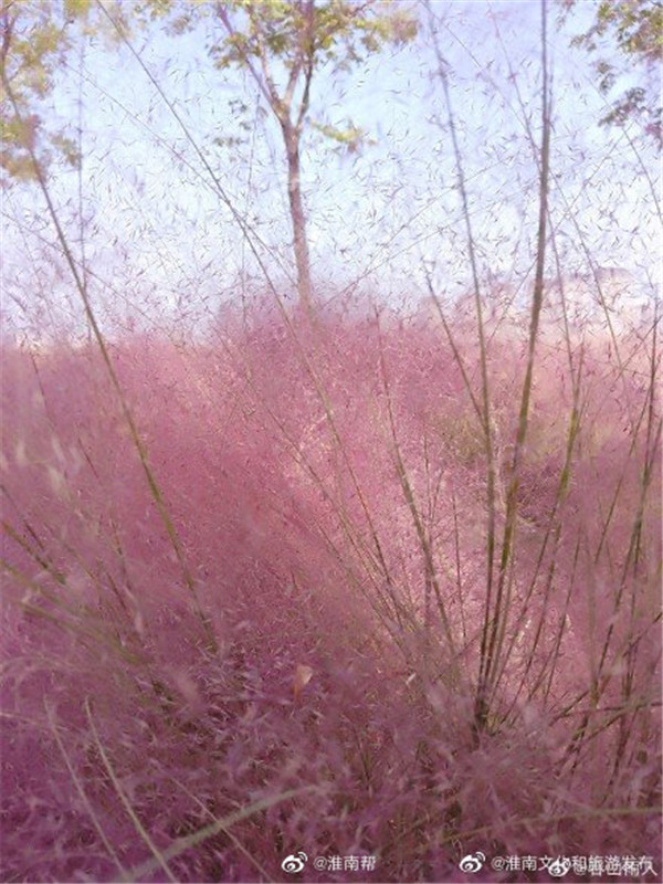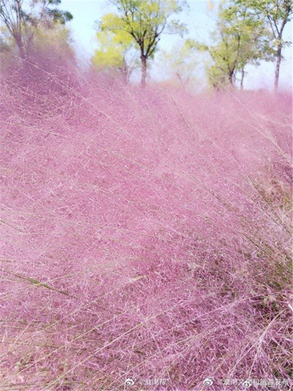 有一種粉紫色花穗如發(fā)絲從基部長(cháng)出,遠遠望去,宛如棉花糖一樣輕盈縵紗隨風(fēng)搖曳。 在陽(yáng)光下,呈現出迷人的粉色霧狀,美的令人窒息。