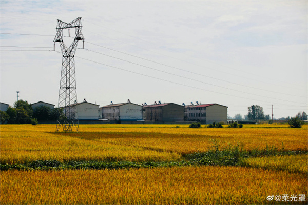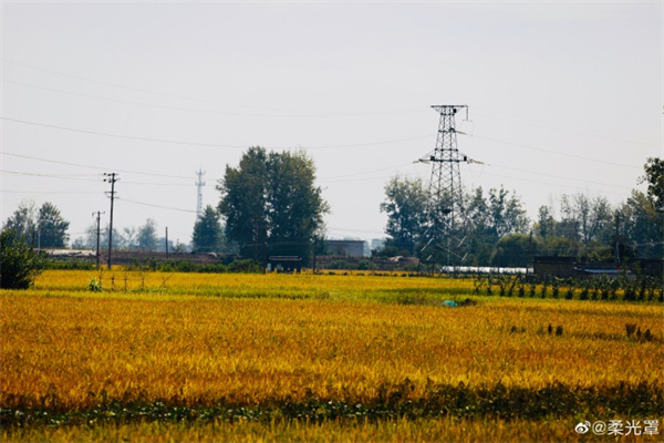 風(fēng)吹過(guò)來(lái)稻田好像大海里的波浪。