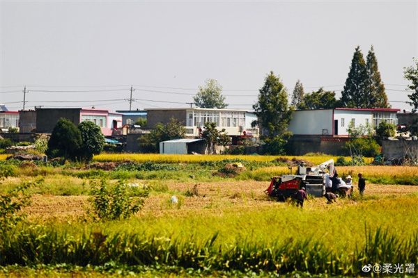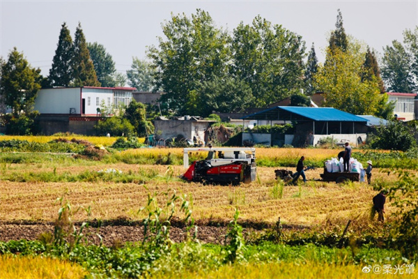 農民伯伯忙著(zhù)收割莊稼,他們黑黑的臉上露出了笑容。