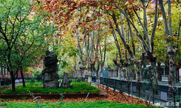 秋露還是一罐顏料。我們走在長(cháng)長(cháng)的石子路上,又來(lái)到了雪松旁。